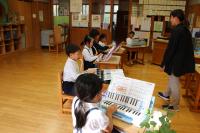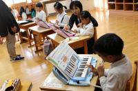 1年 音楽 鍵盤ハーモニカで指づかいの練習をしています。