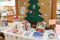3年 国語 図書館で読書をしています。図書館前には12月にちなんで「人権の本」やクリスマスのコーナーがあります。