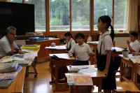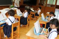 1・2年 音楽 1年生は「しろくまの ジェンカ」の曲に合わせてステップしながら歌っています。2年生は鍵盤ハーモニカで「かえるの合唱」を上手に演奏しています。