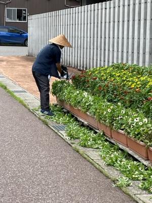 今日は前庭のプランターの花の切り戻しをしていただきました。