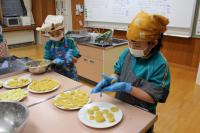 3・4年さつまいもクッキング 学校の畑で育てたさつまいもを使って「いももち」と「スイートポテト」を作りました。小中学校の全校児童生徒の分と先生方の分を作って食べてもらいました。