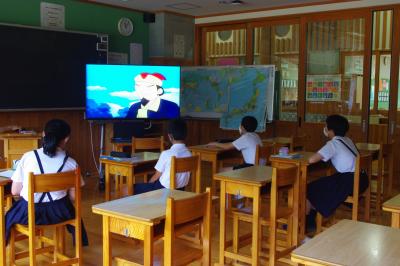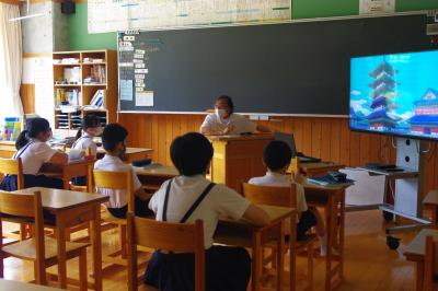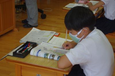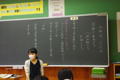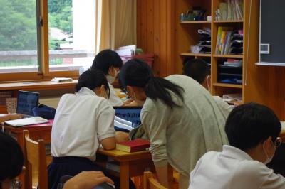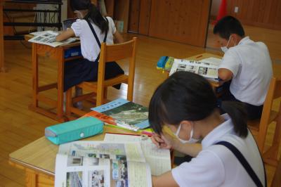 英語では教科書の英文の内容を読み取り、総合的な学習の時間には、白峰特産品販売施設「菜さい」と林業の「桑木」へ取材に行っています。協力していただいた皆様、ありがとうございます。