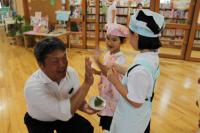 1年 生活科 桜餅を作りました。校長先生にお届けです。