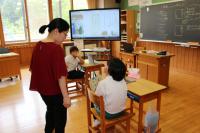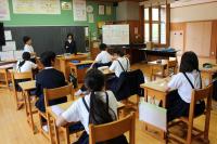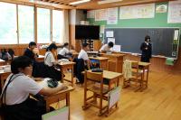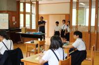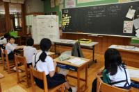 5年 白山麓の4小学校で行う5年生対象の合宿について話し合っています。どんな仕事をすればよいのか、経験者の6年生に聞きに行きました。