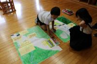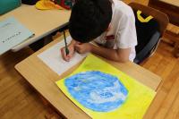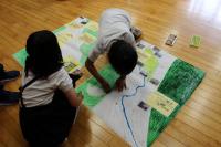 2年 図工 絵の作品票にタイトルやがんばったことを記入します。