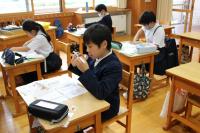 5年 家庭科 裁縫セットの中身を確かめたり、裁ちばさみを使ったりしました。