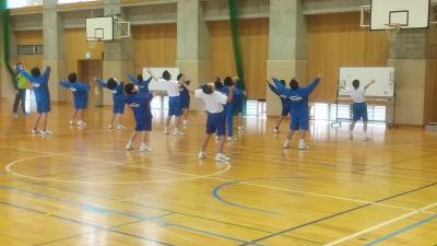 体育 ラジオ体操で準備運動をしています。指先まで伸ばすことを意識しています。