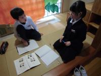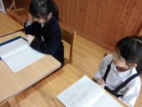 1年 国語「これは、なんでしょう」 クイズの問題をつくっています。学校にあるものが答えです。
