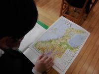 4年 社会「石川県の市や郡」 地図を見ながらどんな名前の市や郡があるのかを調べています。