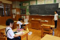 今日は小中合同で運動会の開閉会式・玉入れ競技の練習を行いました。紅団・白団共にきちんと団ごとにまとまって並んでいる姿は立派です。暑い中ですが、休憩をとり、給水対策を講じて練習に臨んでいます。