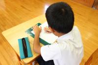 6年 家庭科「生活を豊かに ソーイング」 ナップザックを作り始めました。