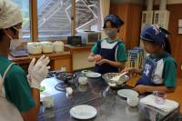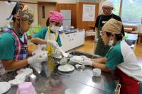 5年 家庭科「食べて元気に」 ごはんの炊き方の実習です。炊いたごはんでおにぎりを作りました。