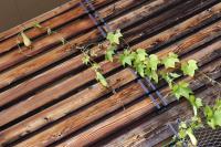 ヘチマが校舎の2階まで伸びています。実も大きくなりました。