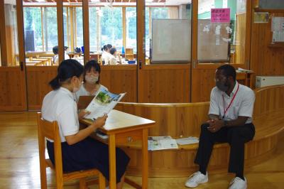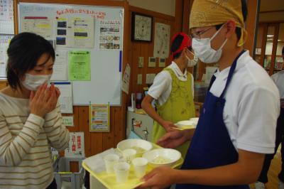 総合的な学習の時間 地域活性化で提言する「スイーツ」や「温泉入りうどん・温泉入りサイダー」を実際に作り、試食してもらっています。
