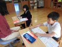 1年 国語「まちがいをなおそう」 助詞「は・へ・を」の正しい使い方を考えています。