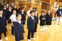 全児童が集まって「すてきな白嶺っ子とは?」どんな姿かを考えました。そして、みんなが楽しく安全・安心に過ごすことができるよう「学校生活のきまり」や「学びのやくそく」などを改めて確認しました。さらに、自分の目標を決めて1年間どのように取り組むかを考えることも大切だと先生からお話がありました。どの子も真剣に聞いていました。さあ、新1年生も加わって白嶺っ子の新たなスタートです。