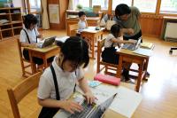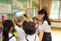 「お話ボランティア」の方々が、朝読書の時間に読み聞かせをしています。