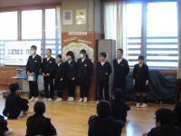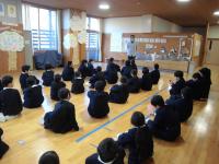 12月の白嶺っ子集会では、各委員会からのお知らせや石川県硬筆書写作品コンクールの表彰伝達がありました。生活・放送委員会は、学校生活を安全に過ごすための呼びかけを行いました。低学年にもよくわかるように、寸劇を交えて表現しました。全校で気をつけて、「すてきな白嶺っ子」をめざしていきましょう。