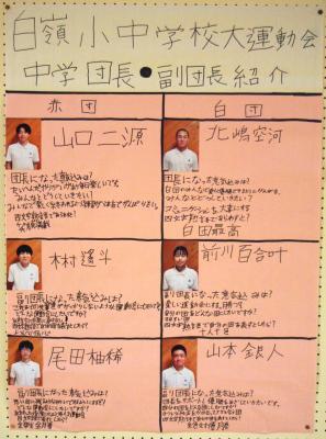 小学校棟には、中学校の運動会団長、副団長の抱負を掲示しています。