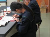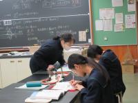 1年生 理科 虫めがね等の中央部がふちより厚いレンズ(凸レンズ)の光の屈折や焦点について学習しています。