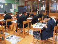 2年生 国語 今日から書写の毛筆授業が始まりました。行書体で「雲海」という言葉を書いています。
