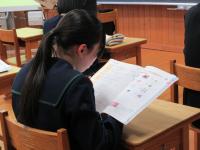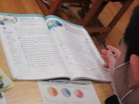 3年生 英語 国際協力について書かれたまとまった英文を読んで、概要を捉える問題に取り組んでいます。