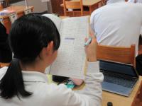 5年生 国語 プリントの問題に取り組んでいます。