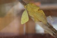 3年生 国語「こまを楽しむ」 学習のふり返りを書いています。教室に置いてある飼育箱の中では、今朝チョウが羽化しました。
