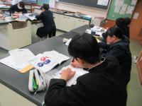 (1年生)美術の授業です。自然光のみの教室で、シューズの模写をしています。