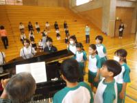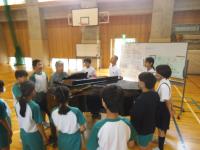 〈小学校〉音楽会の歌の練習をしています。声の出し方を教わっています。