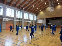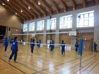 中学1・2・3年生 合同体育 バレーボールをしました。クラス対抗で盛り上がっています。