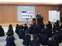 2学期の運動会、白嶺祭や様々な学習活動の写真を映像で振り返り、挑戦し続けたことを称え、そしてお家の人や地域の人、仲間たちへの感謝が大切であることを校長先生が話しました。来年は、小さな努力を積み重ね、さらに「進化」することを期待しています。