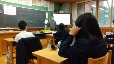 研究授業ということで、小中の先生が集まり、授業を参観しています。