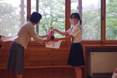 校内意見発表会 各学年の代表が意見を発表しています。3年生の生徒が学校代表に決まり、市の大会に参加します。