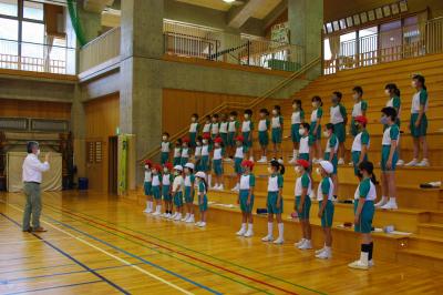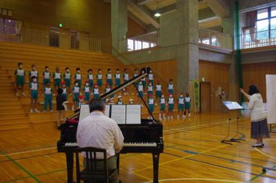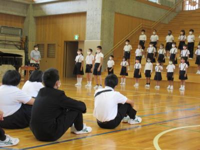 来週の白山市音楽会に向けて全体練習を行っています。音楽会は全校児童で参加します。