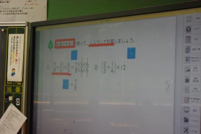 算数 分数の計算の工夫について考えています。
