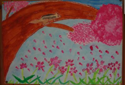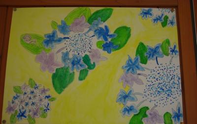 花の絵が仕上がり、掲示しています。