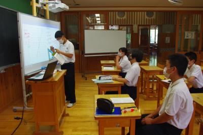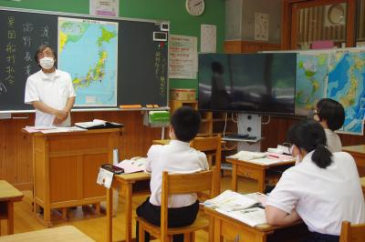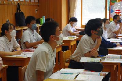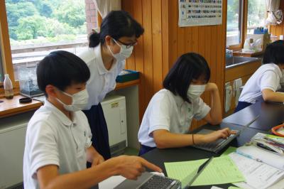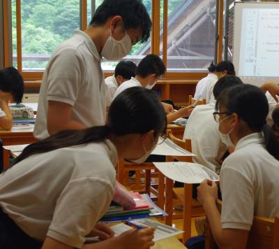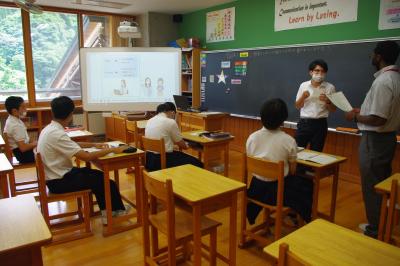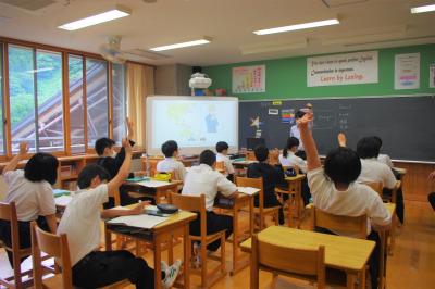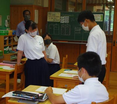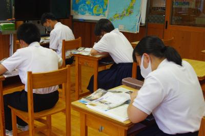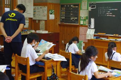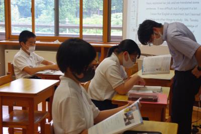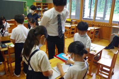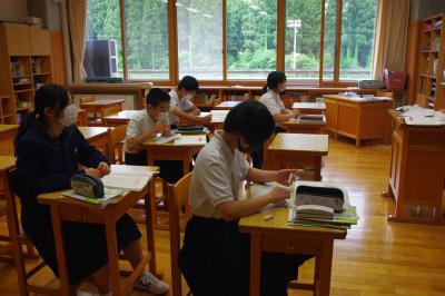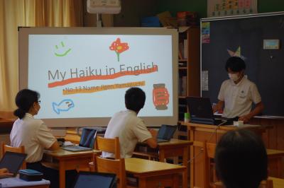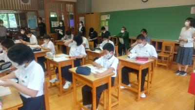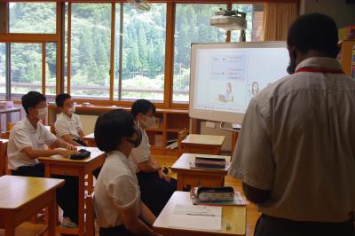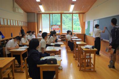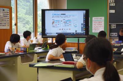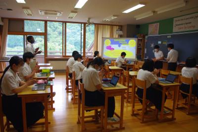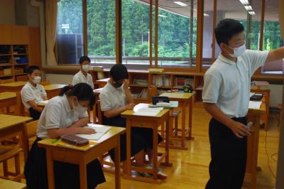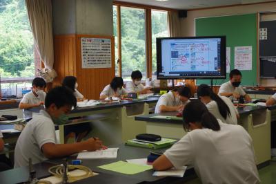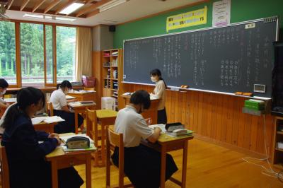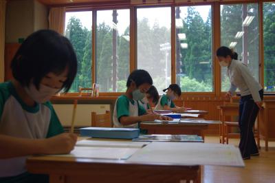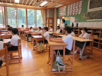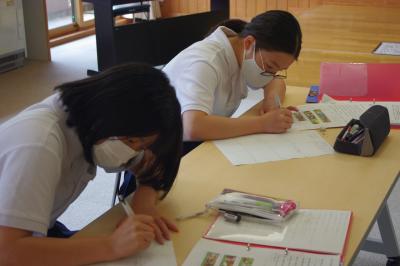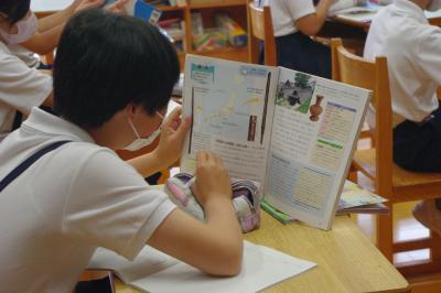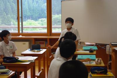 英語では教科書の英文の内容を読み取り、総合的な学習の時間には、白峰特産品販売施設「菜さい」と林業の「桑木」へ取材に行っています。協力していただいた皆様、ありがとうございます。