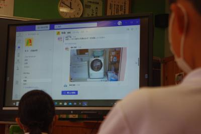 社会 水が学校のどこでどんなときに使われているか、端末で各自撮影した写真をアップロードして共有しています。