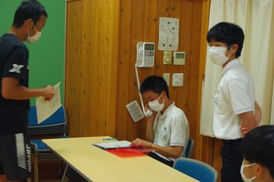 総合的な学習の時間 フィールドワークに向けて、訪問先に電話でアポイントメントを取っています。