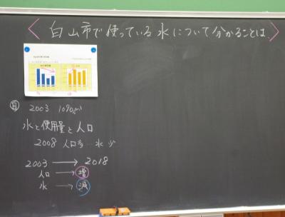 社会 白山市で使っている水について、グラフや資料から分かることを考えています。