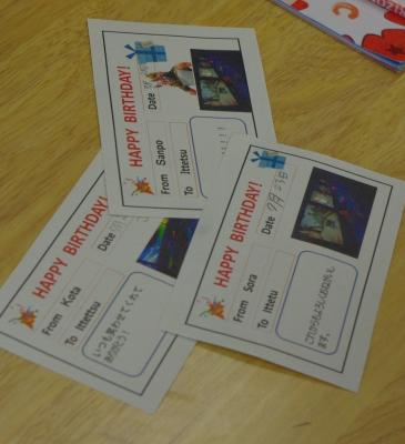 外国語 バースデーカードを交換し合っています。