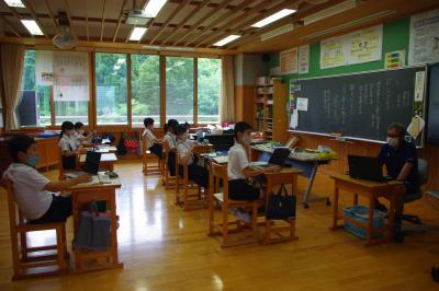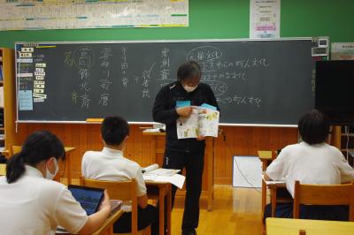白山警察署生活安全課から2名の方が来校しました。みんなでいじめについて真剣に考えました。