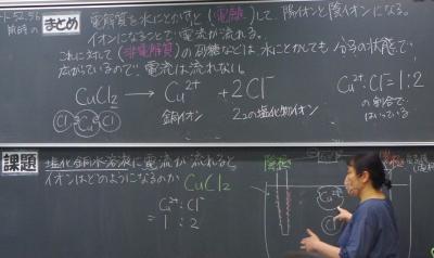 理科 塩化銅水溶液に電流を流すとイオンはどうなるのかを考えています。