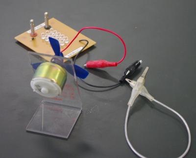 金属と電解質水溶液を使って電気を取り出す実験をしています。