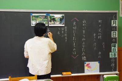 道徳 「ねがいをつみ上げた石橋」というお話を通して、伝統文化について考えています。