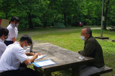 白山ろくで働く人に引き続きアンケートを行っています。今回は瀬波川キャンプ場を訪問しています。白山ろくで働く良さややりがい、苦労、人生観について聞いています。