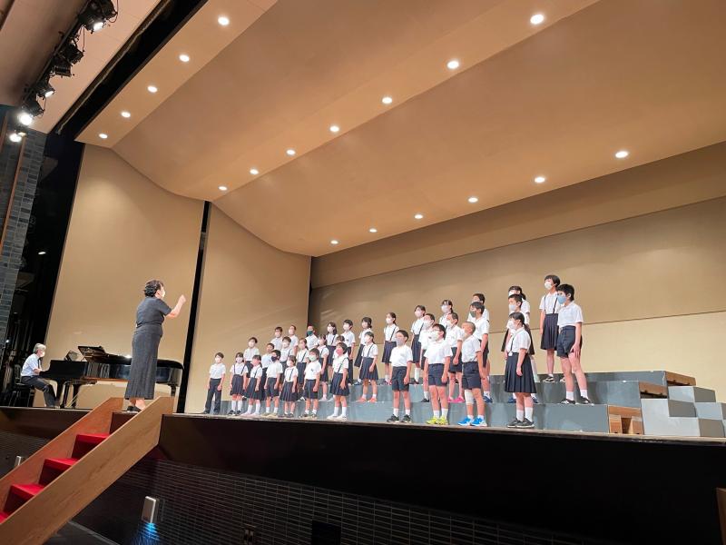 音楽会の発表リハーサルを行っています。観客は中学生です。発表後、良かったところや気をつけるともっと良くなるところを、多くの中学生が伝えています。小学生にとって良いリハーサルになりましたし、中学生にとってはかわいい後輩達のためでもあり、また「表現力・伝える力」を発揮するよい機会となりました。