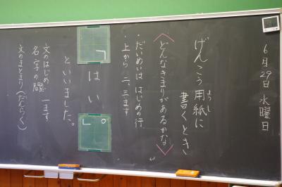 原稿用紙に書くときの決まりについて学んでいます。