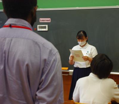英語 総合的な学習で行っている職業アンケートで学んだことをいかし、自分の職業観について英語でスピーチしています。